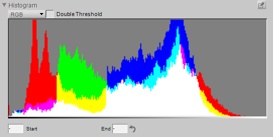 در این هیستوگرام ، به جای روشنایی کلی تصویر ، روشنایی هر کانال رنگ به صورت مجزا نمایش داده شده .